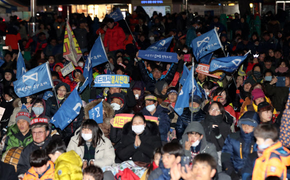 사드(고고도미사일방어체계) 배치 작업이 진행되고 있는 가운데 8일 오후 경북 김천역 광장에서 ‘사드 배치 결사반대 김천시민 촛불집회’가 열렸다.