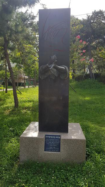 부산대 안에 설치된 ‘10·16 부마민중항쟁 탑’.
