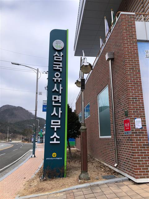 경북 군위군 삼국유사면사무소에 새 현판이 세워져 있다.