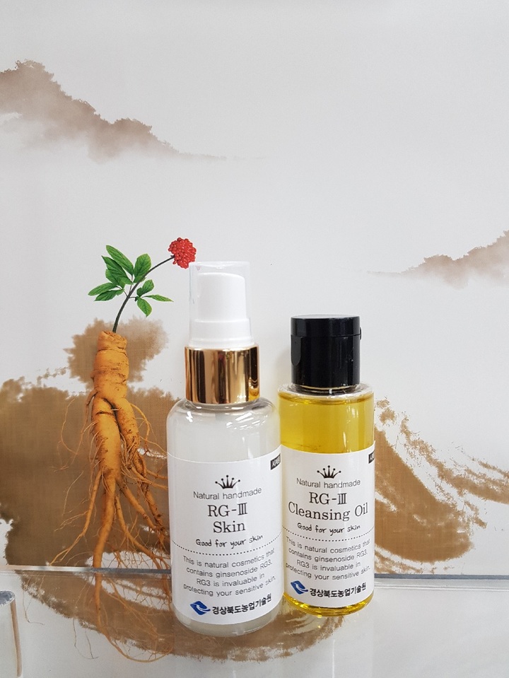 앞서 도농업기술원 풍기인삼연구소는 최근 홍삼의 대표적인 활성 사포닌인 Rg3를 함유한 인삼 화장품을 개발했다. 홍삼과 인삼을 구분하는 핵심 성분인 Rg3 사포닌은 면역력 증진과 혈액 흐름 개선, 피로 해소 등의 효능이 있다고 알려졌다.