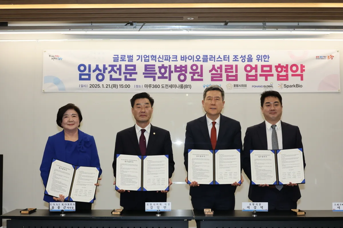 협약을 통해 ▲임상전문 특화병원 설립·운영 ▲임상 연구 및 혁신 치료법 개발 ▲국제 의료·연구기관 협력을 통한 글로벌 임상 연구 플랫폼 구축 ▲포항 바이오산업 생태계 조성 등에 힘을 모으기로 했다.