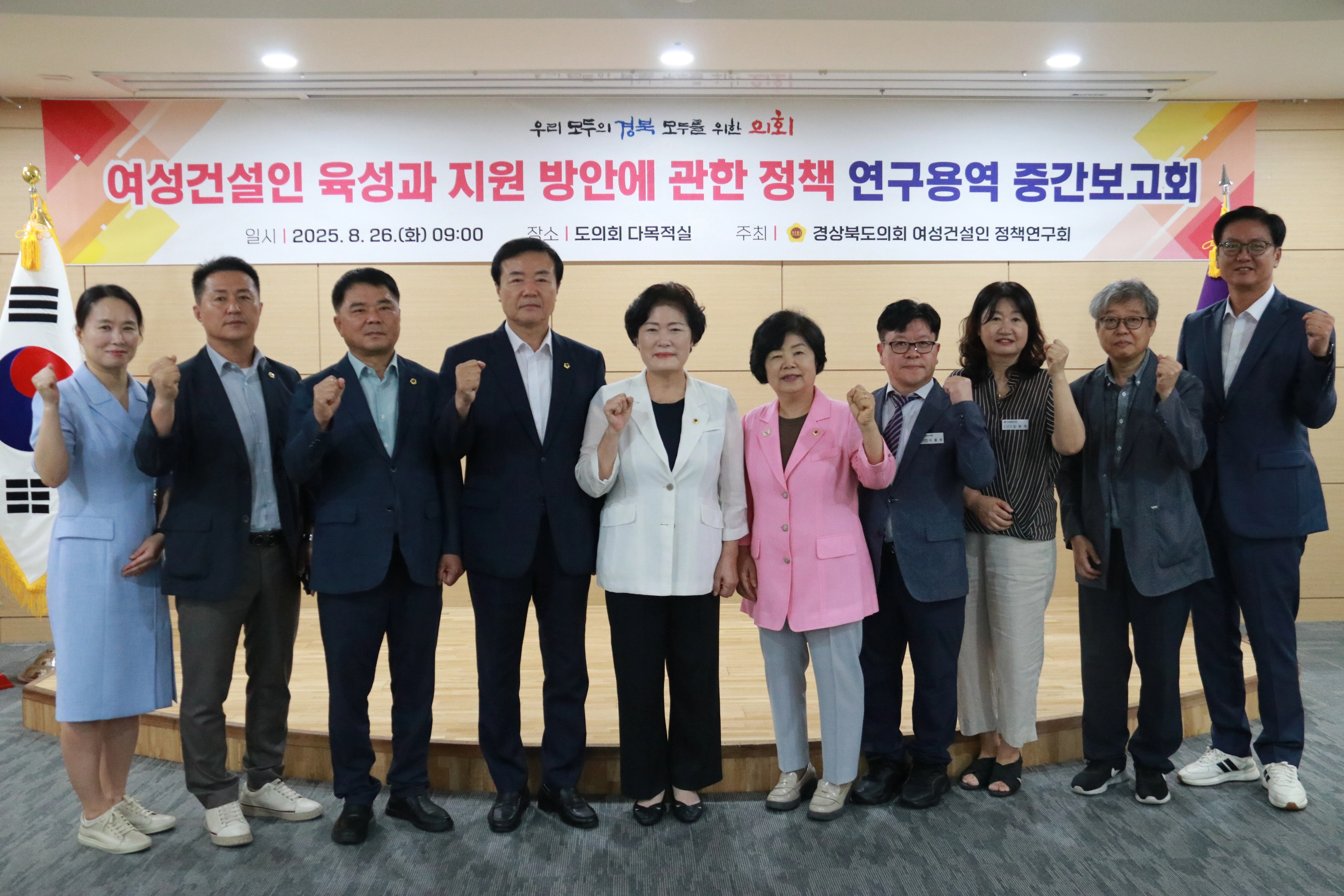 경북도의회 ‘경상북도의회 여성건설인 정책 연구회’(대표 남영숙 의원)는 26일 도의회 회의실에서 ‘여성 건설인 육성과 지원 방안에 관한 정책 연구용역’ 중간보고회를 개최했다.