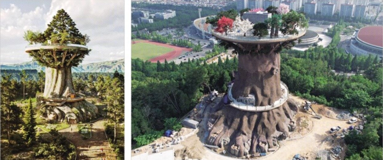 인공나무 전망대 조감도와 달라
