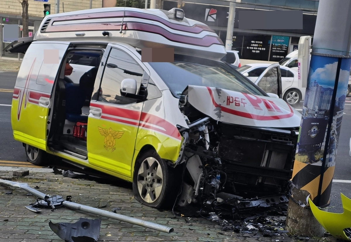 경남 창원서 환자 태운 구급차 전봇대 들이받아…구급대원 등 4명 부상