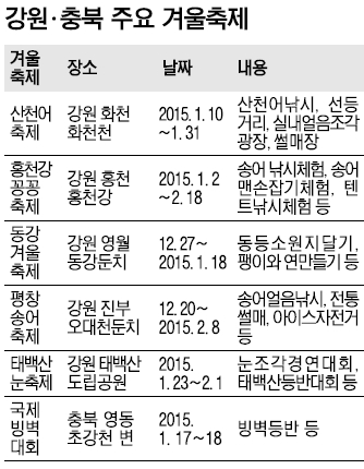 10일 강원도와 충북도 등에 따르면 국내 대표 겨울축제인 화천 산천어축제 등 새해 초부터 시작될 축제에 다양한 이벤트가 마련되고 있다.