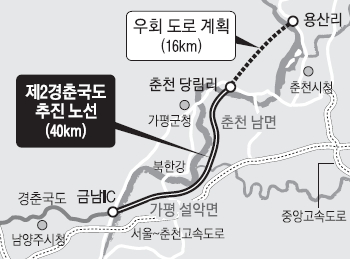 시 관계자는 “서울에서 춘천을 오가는 도로가 총 3개 노선으로 구축되면 차량 분산으로 교통 정체가 크게 해소되고 이동 시간도 단축될 것”이라며 “레고랜드를 비롯한 대형 관광지 개발 뒤 춘천을 찾는 관광객이 증가할 것을 감안했을 때 새로운 노선 신설이 절실하다”고 말했다.