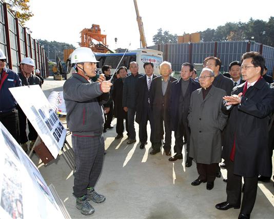 올림픽파크를 벗어나 가톨릭관동대 캠퍼스 내에 건립되는 아이스하키 2(여자)경기장은 40%의 공정률을 보이고 있다. 경기장을 옮겨 다니며 진입도로 건설현장도 함께 돌아봤다. 최 시장은 현장 실무자들에게 “공사기간이 촉박해 어려움이 많겠지만 2017년 초 테스트 이벤트가 열리기 전까지 완공을 서둘러 달라”면서 “올림픽 이후 경기장들은 다양한 방법으로 활용되고 올림픽 유산으로 미래세대에까지 남길 건축물이 되는 만큼 최선을 다해 달라”고 당부했다.