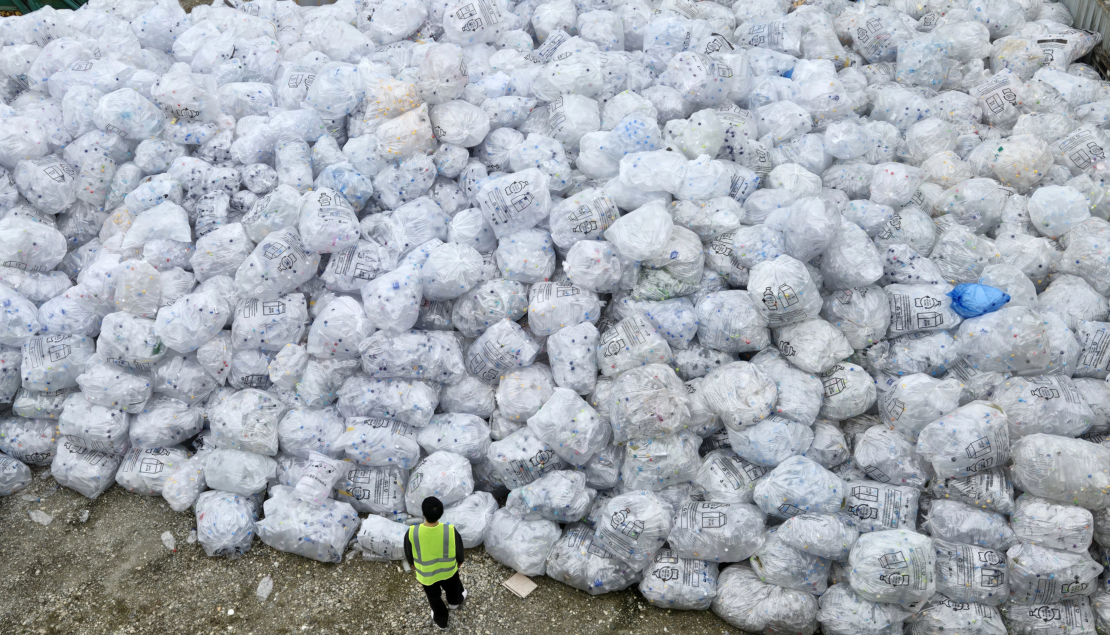 30일 강원 강릉시 자원순환센터에 가뭄 여파로 배출된 생수 페트병이 쌓여 있다. 9월 1~19일 배출량은 27t으로, 지난해 같은 기간보다 2.1배 늘었다.