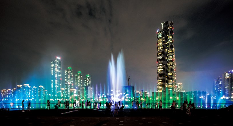 청라중앙호수공원 음악분수대 야경(인천경제자유구역청 제공)<br>