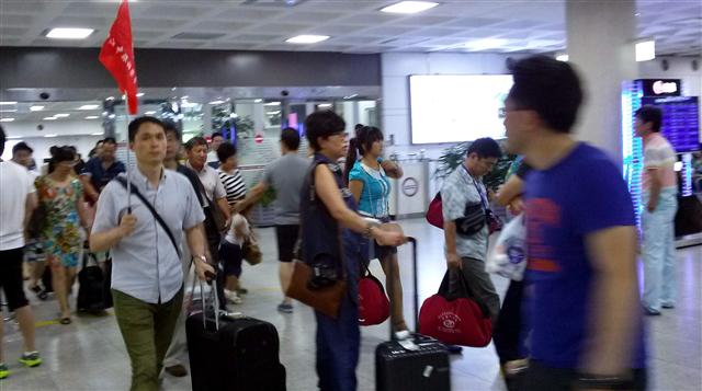 제주공항을 통해 입도하는 중국인 관광객행렬.