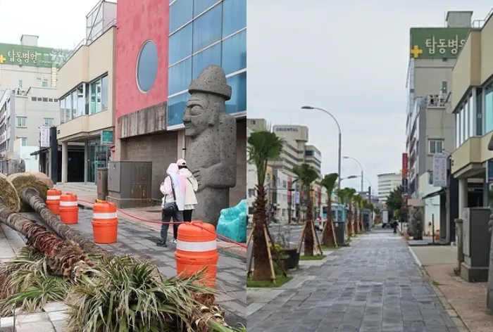 모두 뽑아내 사라졌던 제주 탑동로 야자수가 부활(?)했다.