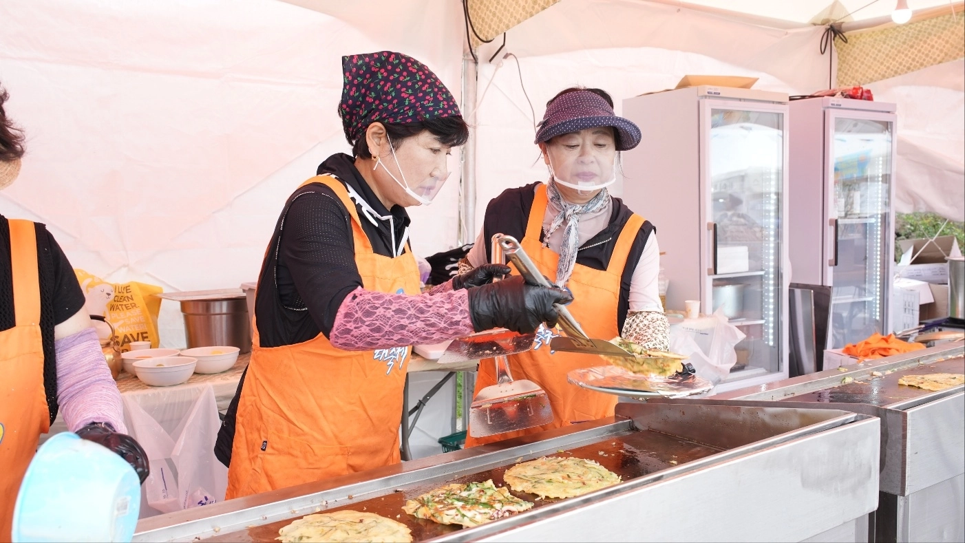 지난 17일부터 19일까지 열린 ‘제8회 제주광어 대축제’에서 축제 관계자들이 광어해물파전을 만들고 있다. 제주도 제공