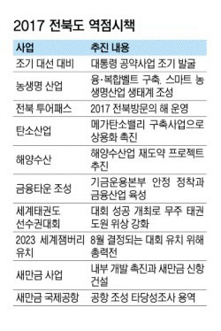 -전북은 전국 지자체 가운데 가장 빠르게 대선 공약 조기 발굴에 나섰다. 대선은 지역의 현안과 대단위 사업을 국책 사업에 반영하고 추진할 중요한 기회이기 때문이다. 지난 10월부터 ‘제19대 대선 공약사업 발굴 추진 계획’을 수립해 조직적·체계적으로 준비하고 있다. 정당과 후보자의 수용성이 높은 사업을 연말까지 찾아내 1월 중에 구체화하겠다. 현재 농업·농촌, 문화·관광, 산업경제, 새만금, 사회간접자본(SOC), 지식기반 등 모든 분야에 걸쳐 45개 사업을 발굴해 긴밀하게 논의 중이다.
