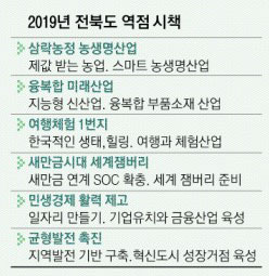 -지난해는 위기와 기회가 상존하는 속에 한계에 도전하고 발전의 계기를 모색한 기간이었다. 경기 침체 속에 한국GM 군산공장이 폐쇄됐지만 결코 좌절하지 않았다. 오히려 자동차, 조선 등 주력 산업의 체질 개선에 나서 미래형 산업생태계의 토대를 마련했다. 도정 핵심 목표인 농생명산업도 스마트팜 혁신밸리 조성 공모 선정 등 선도 기반을 확충했다. 여행체험 1번지 가꾸기, 전북 1000리길 조성 등으로 전북의 아름다운 산하가 치유 공간으로 거듭나고 있다. 전라도 천년 기념 사업도 속속 실체가 드러나고 있다. 전북 가야사 등 전북의 역사와 문화도 재조명됨으로써 도민들의 자존감이 높아졌다. 전국 최초로 사회적경제 혁신타운 조성으로 사회적경제 활성화에도 앞장서고 있다.