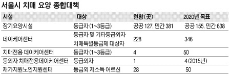 서울시는 2020년까지 치매·요양시설을 480여곳 늘리고, 치매 집중 검진도 75세 한 차례에서 70세와 75세 두 차례로 늘려 실시한다.