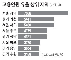 고용도 준다. 서울에서 줄어드는 일자리 수는 3만 2500개로 예상된다. 서울 강남구가 7566명으로 가장 많고, 서초구(5430명), 종로구(4379명) 순이다. 경기 과천시도 5441명이 줄지만 정부과천청사에 다른 공공기관이 들어서면서 큰 피해는 없을 것으로 봤다.