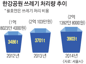 특히 한강공원 여의도지구의 경우 벚꽃축제, 불꽃놀이 등 대형 행사가 많은 관계로 쓰레기가 상대적으로 많이 발생했다.
