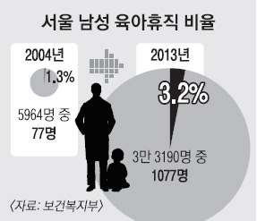 서울 여성이 하루 평균 가사와 돌봄에 쓰는 시간은 총 2시간 57분으로 남성(40분)보다 2시간 17분 더 많았다. 공평한 가사 분담에 대해 여성은 53%, 남성은 44%가 동의했지만 인식과 현실의 차이를 보여 줬다. 육아휴직 역시 서울 남성 70% 이상이 제도를 알지만 실제로 육아휴직을 사용하는 남성 비율은 3.2%에 그친 것으로 나타났다. 2004년 1.3%, 2010년 1.9%로 점차 비율이 높아지지만 유의미한 차이는 없는 실정이다.