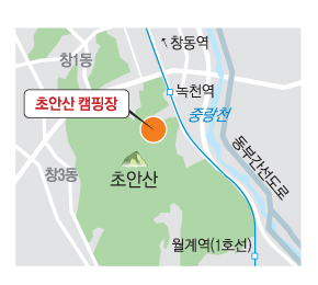 서울 지하철 1호선 녹천역에서 도보 3분 거리에 있는 초안산 숲속 캠핑장(위치도)이 새롭게 문을 연다.