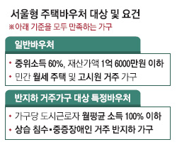 폭넓은 지원을 위해 기존 서울형 주택바우처(일반바우처)보다 소득·자산 요건을 완화하고 등록외국인도 지원 대상에 포함했다. 일반바우처 소득 요건은 중위소득 60%, 재산가액 1억 6000만원 이하지만 반지하 특정바우처는 가구당 도시근로자 월평균 소득 100% 이하로 확대했다. 이에 3인 가구가 일반바우처를 지급받으려면 가구당 월 소득이 251만원 이하여야 하지만 반지하 특정 바우처는 가구당 월 소득이 641만원 이하면 대상이 된다. 또한 건강보험상 가구 분리가 되지 않은 피부양자가 독립해 반지하에 홀로 거주하더라도 1인 가구 소득 기준이 적용된다.