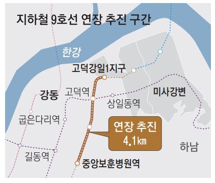고덕 ‘반값 아파트’ 1㎞ 거리에 9호선 뚫린다