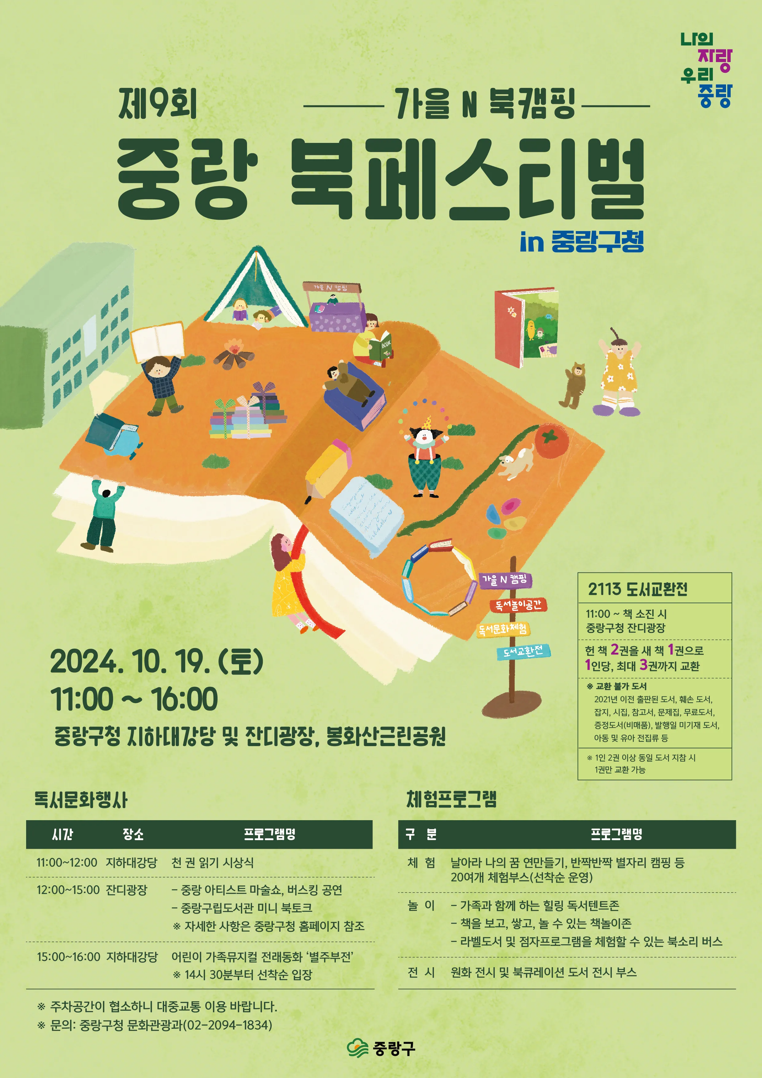 서울 중랑구가 오는 19일 중랑구청 잔디광장에서 ‘제9회 중랑 북페스티벌’을 개최한다고 17일 밝혔다.