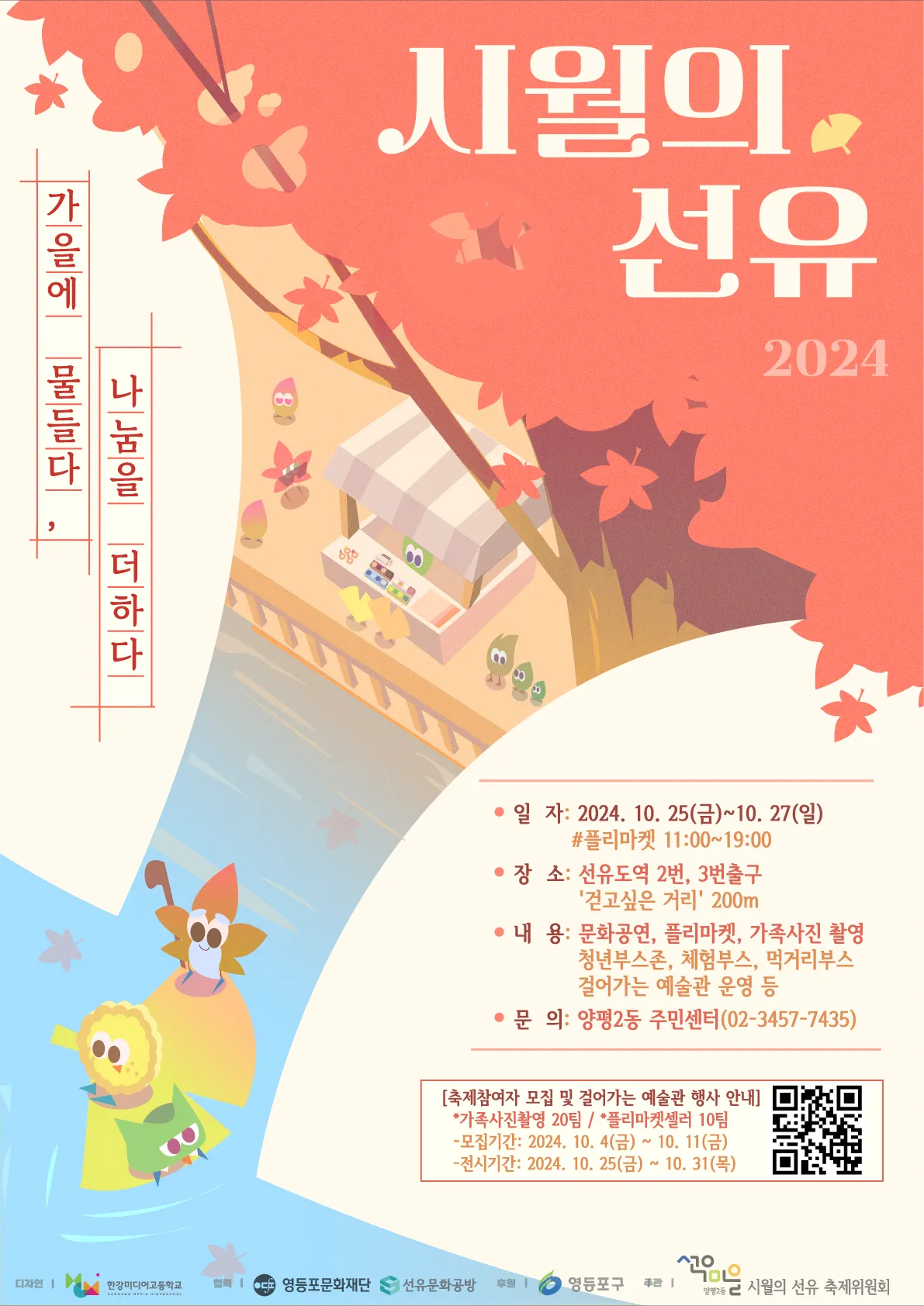 선유도역에서 선유도공원을 잇는 메인 무대 ‘걷고 싶은 거리’에서에서는 ‘시월의 선유’ 축제를 한다. 마을 예술가, 직능단체 회원, 학생, 구민이 직접 공연한다. 체험부스, 플리마켓, 먹거리 장터 등도 운영한다. 선유초등학교 학생들의 대북 공연, 롯데웰푸드와 함께하는 ‘과자 먹기 이벤트’, ‘로봇 댄스’도 마련했다.