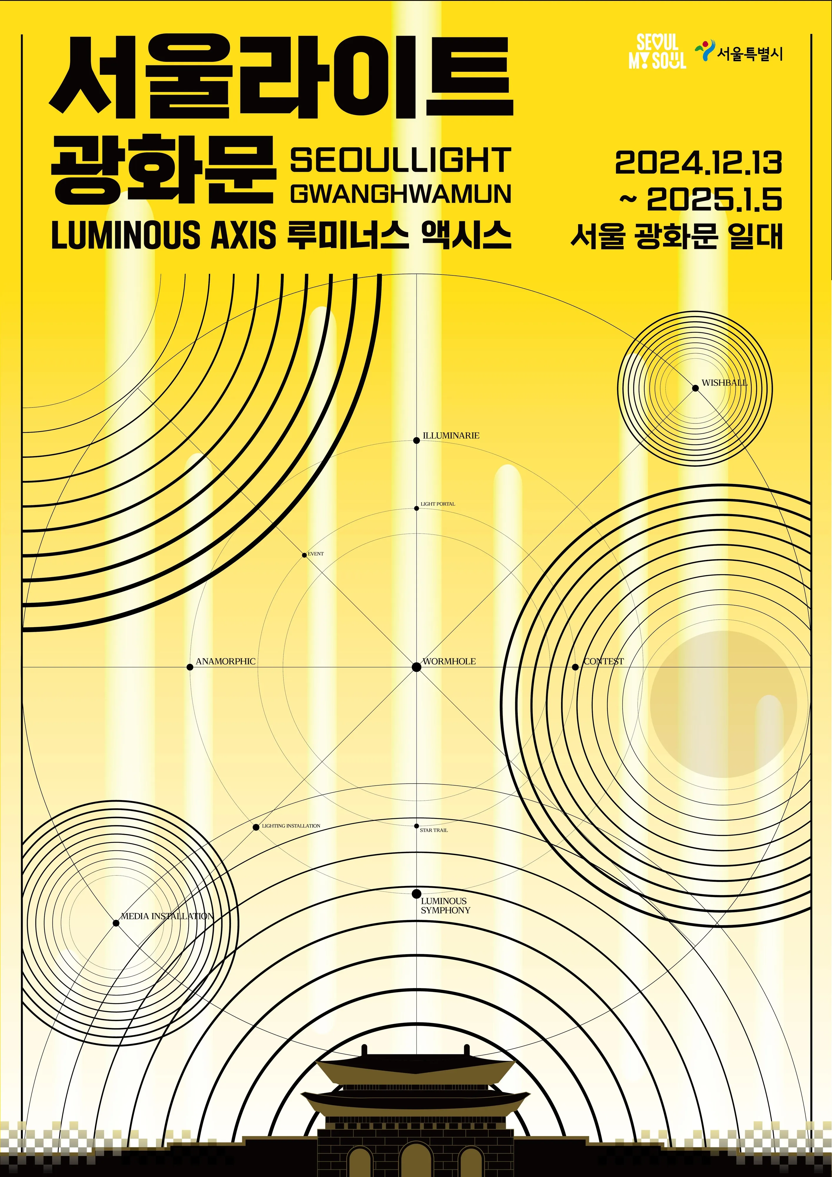 서울시는 미디어아트 축제 ‘2024 서울라이트 광화문’(포스터)을 12월 13일부터 내년 1월 5일까지 개최한다고 27일 밝혔다. ‘빛의 축’이라는 뜻의 ‘루미너스 액시스(Luminous Axis)’를 주제로 세계적 미디어파사드 작가의 조형물 전시, 공모전 ‘아뜰리에 광화’ 등을 한다.