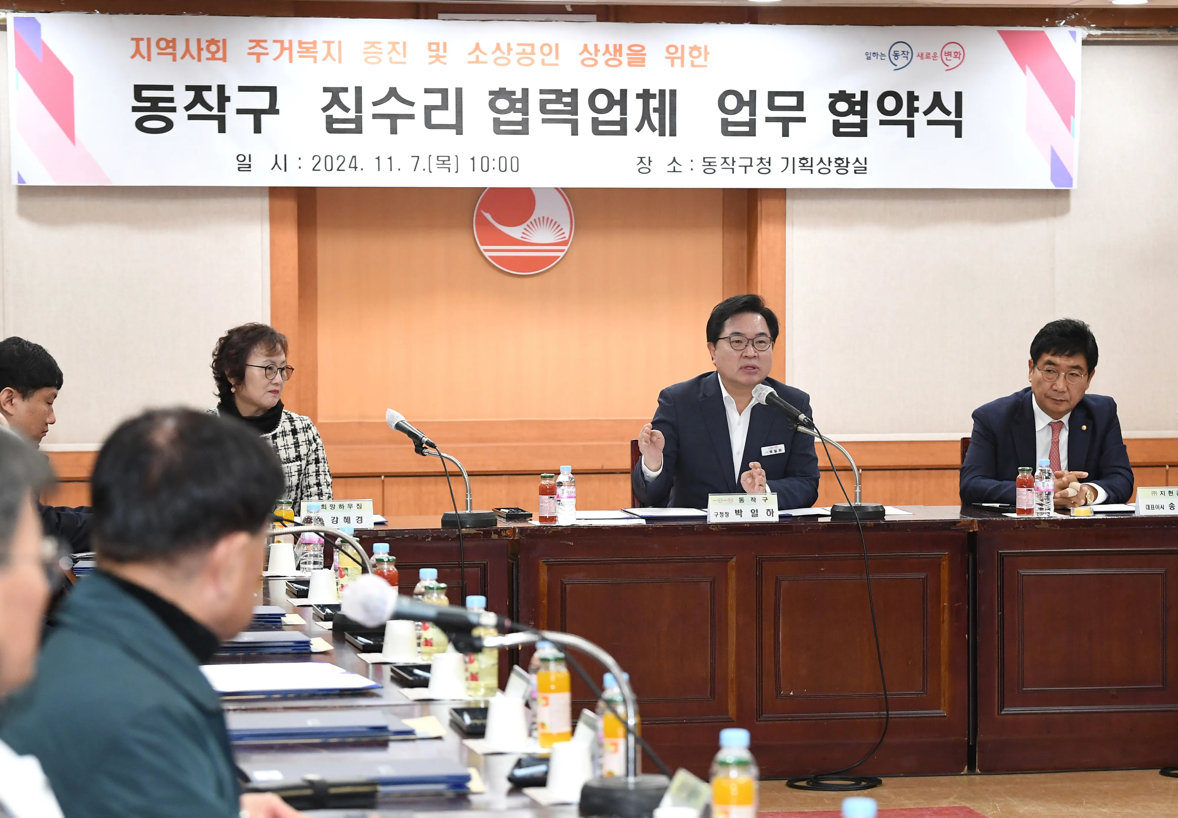전날 오전 10시 구청 기획상황실에서 열린 협약식은 박일하 동작구청장과 관내 집수리 시공업체 대표들이 참석한 가운데 열렸다. 집수리가 필요한 구민이 1899-8297(빨리고쳐)로 문의하면 협력업체로 연결돼 시공비 10%를 할인받는다. 이번 협약을 통해 구민은 저렴한 값에 시공을 받을 수 있고, 업체는 더 많은 고객을 끌어들일 수 있을 것으로 기대된다.