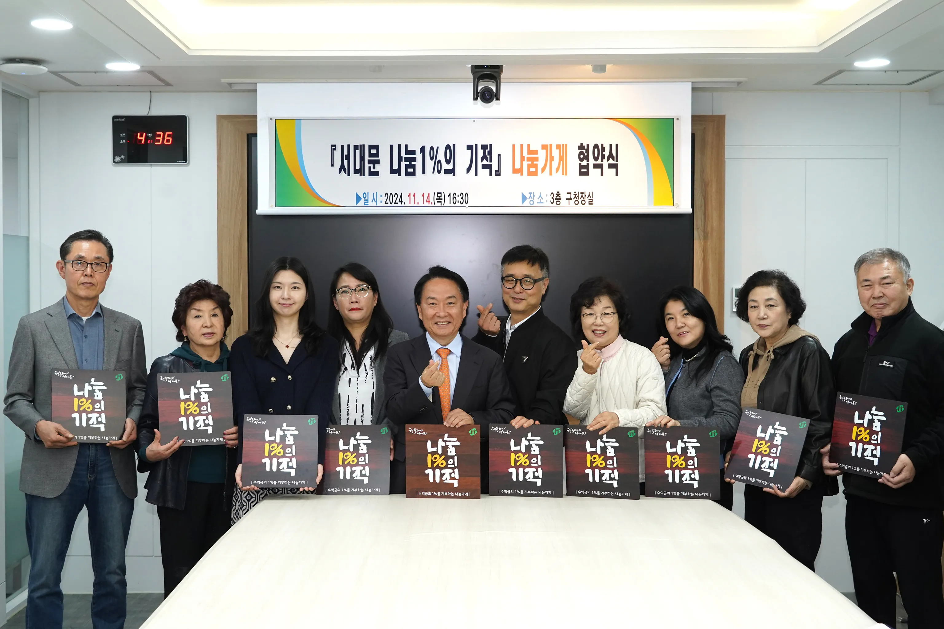 앞서 구는 지난 14일 구청장실에서 신촌이대상가번영회 소속 11개 업체와 웅네서서갈비(97호점), 수작(98호점)과 비어캐빈 서대문구청점(99호점), 다품한의원(100호점)과 나눔 1%의 기적 협약을 맺은 바 있다.