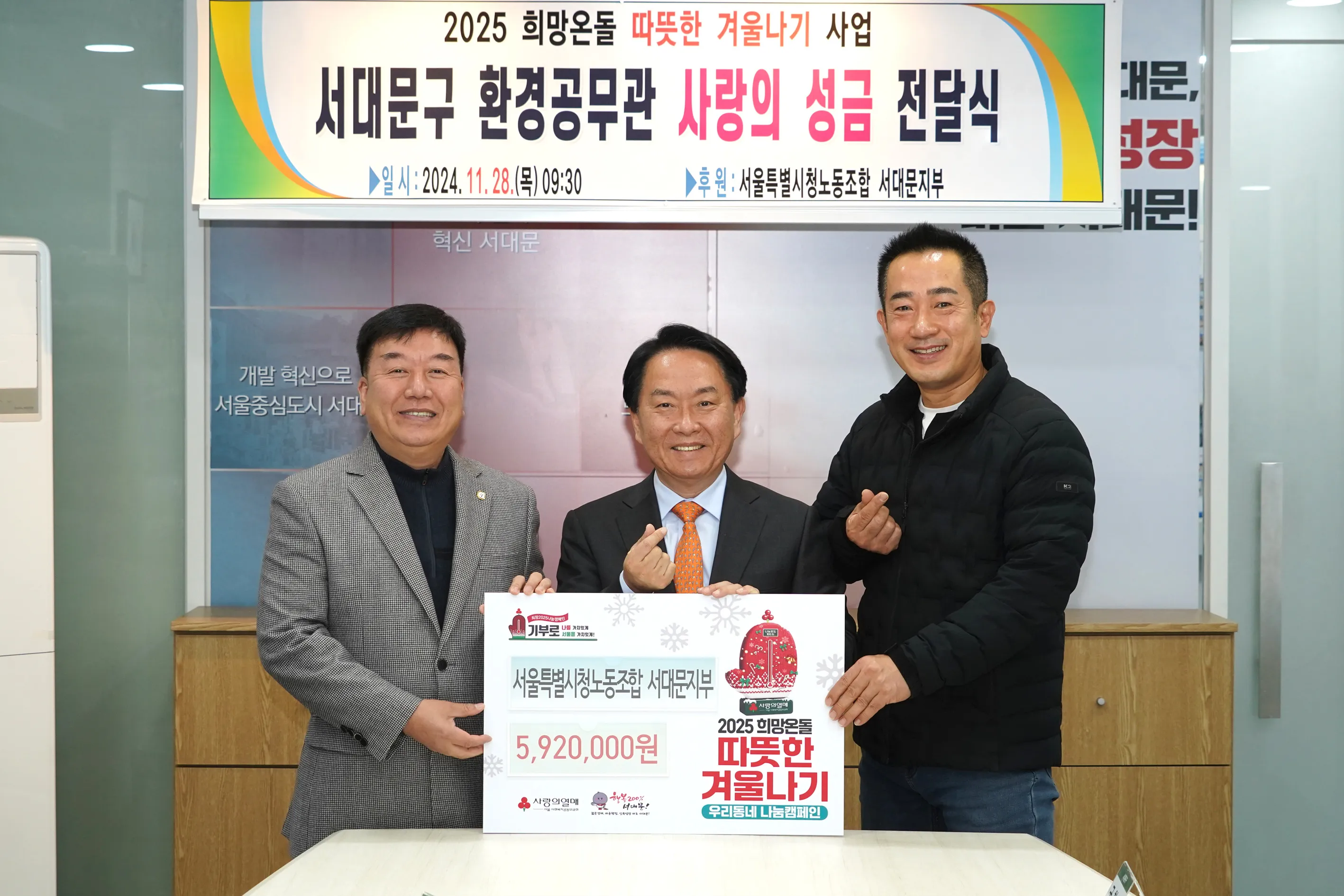 서대문구 환경공무관, 따뜻한 겨울나기 성금 기부로 추위 녹였다