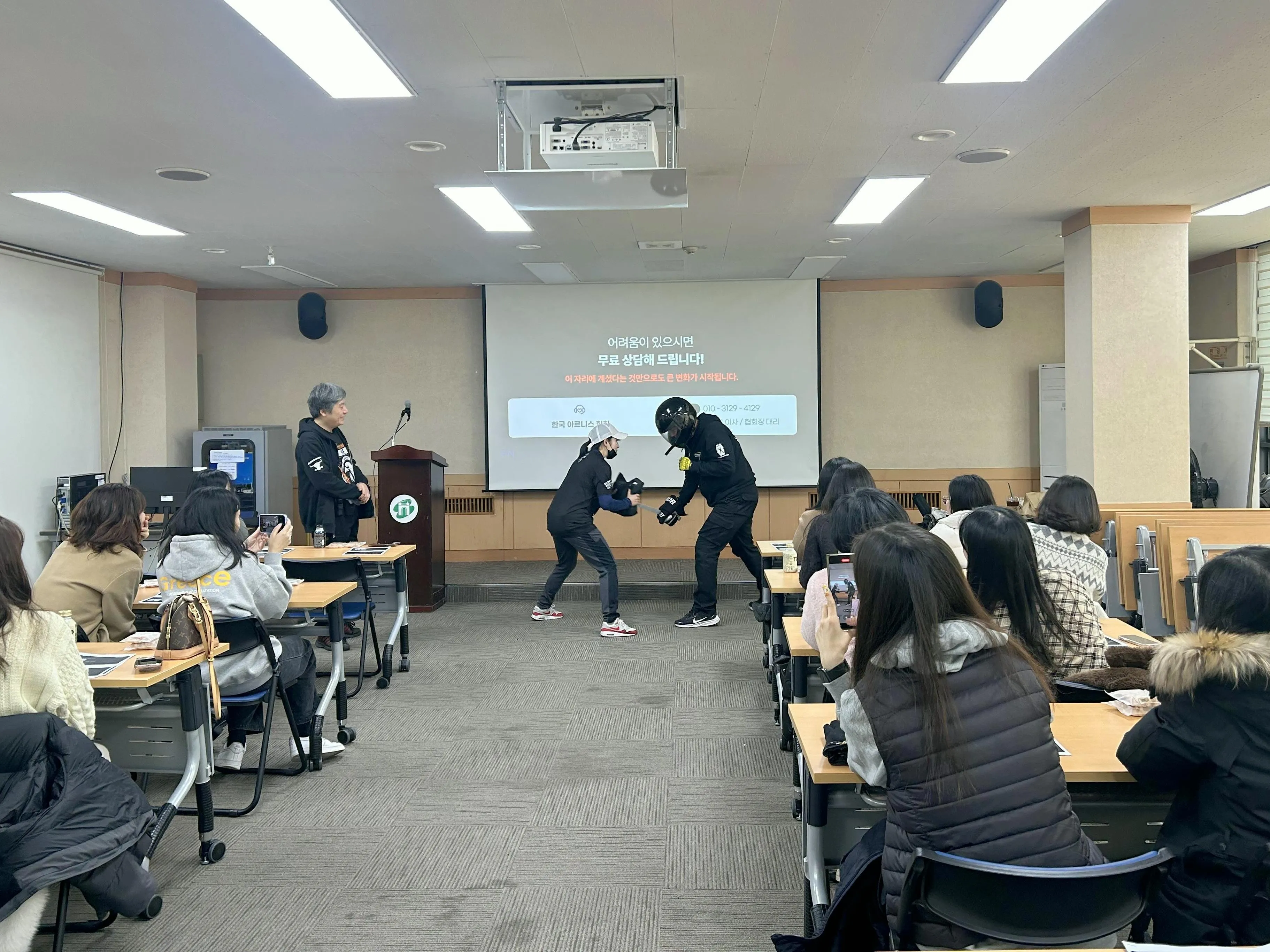 지난 4일 서대문구보건소 8층 미소지움관에서 열린 이번 교육에선 호신용 모바일 애플리케이션과 위급 상황 시 대응법, 소지품을 이용한 자기 방어와 가상 시나리오 연습 등이 진행됐다.