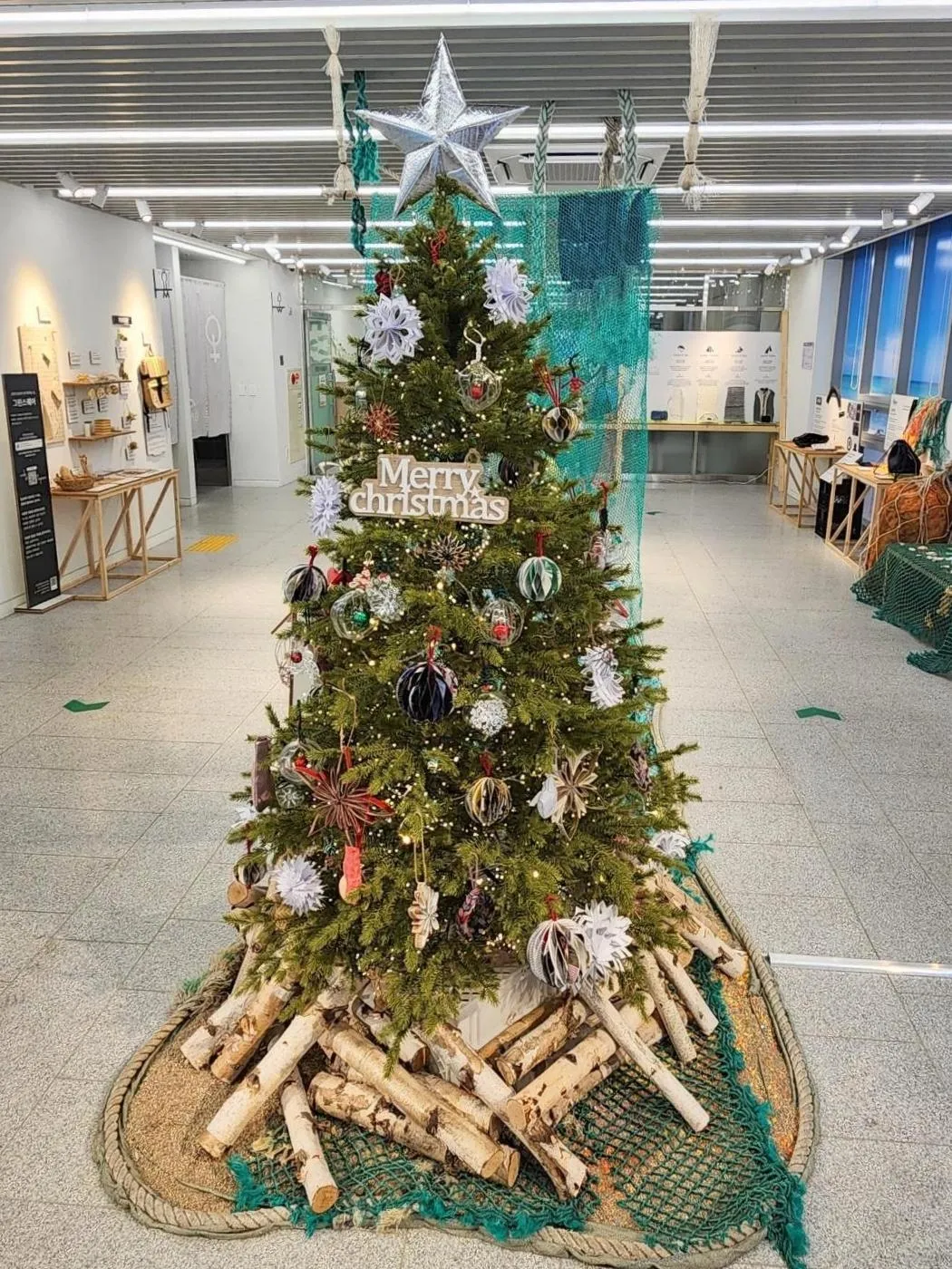 트리 장식품은 페트병, 밀 줄기, 이면지, 양말목, 택배 상자 등을 활용해 만들었다.