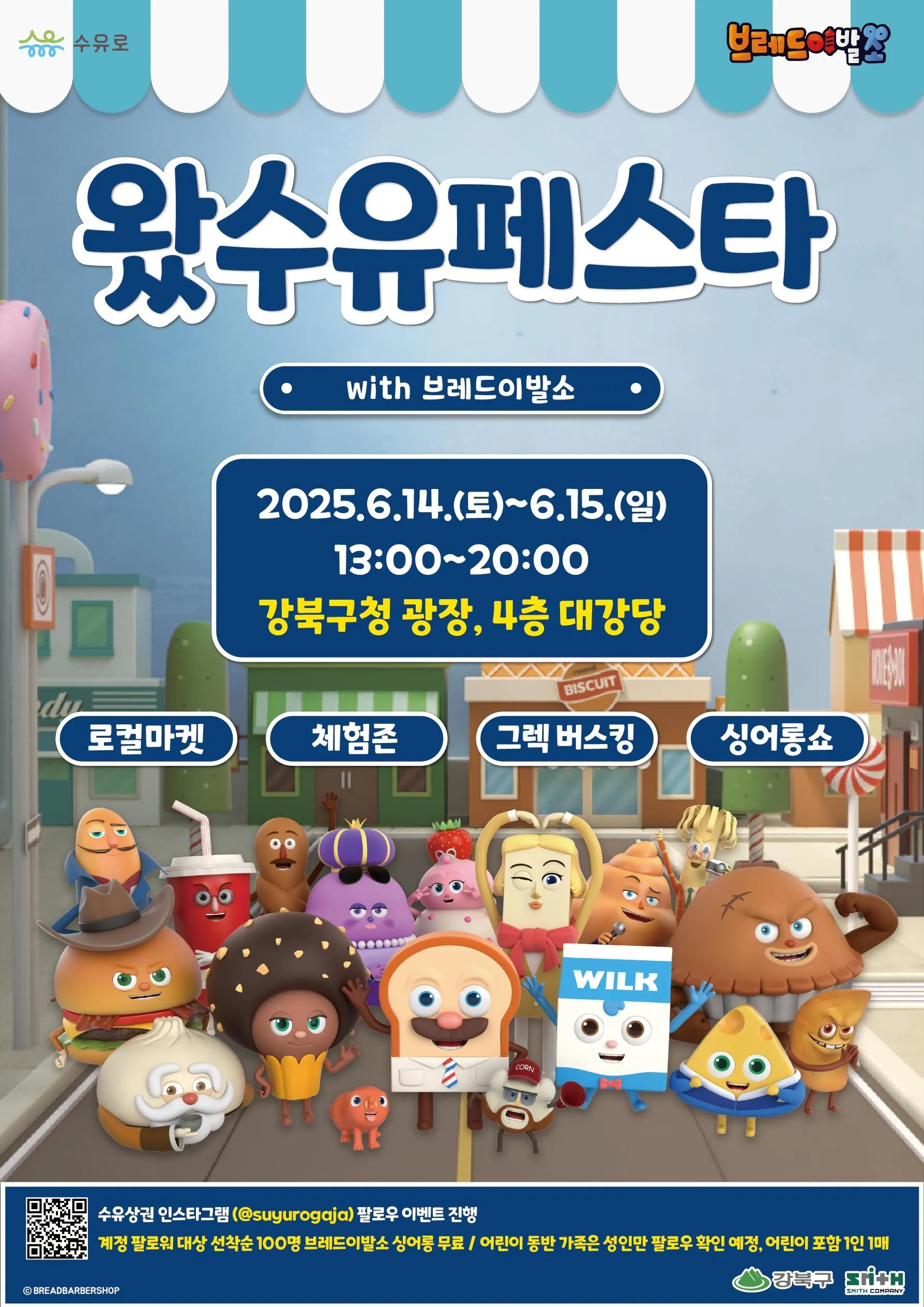 오후 1시부터 8시까지 진행하는 이 행사는 인기 애니메이션인 브레드이발소의 캐릭터가 수유상권을 탐험하는 콘셉트로 진행된다. 방문객들이 수유의 다양한 매력과 발전 가능성을 친근하게 느낄 수 있도록 팝업 스토어와 체험존, 싱어롱쇼 등이 준비될 예정이다.