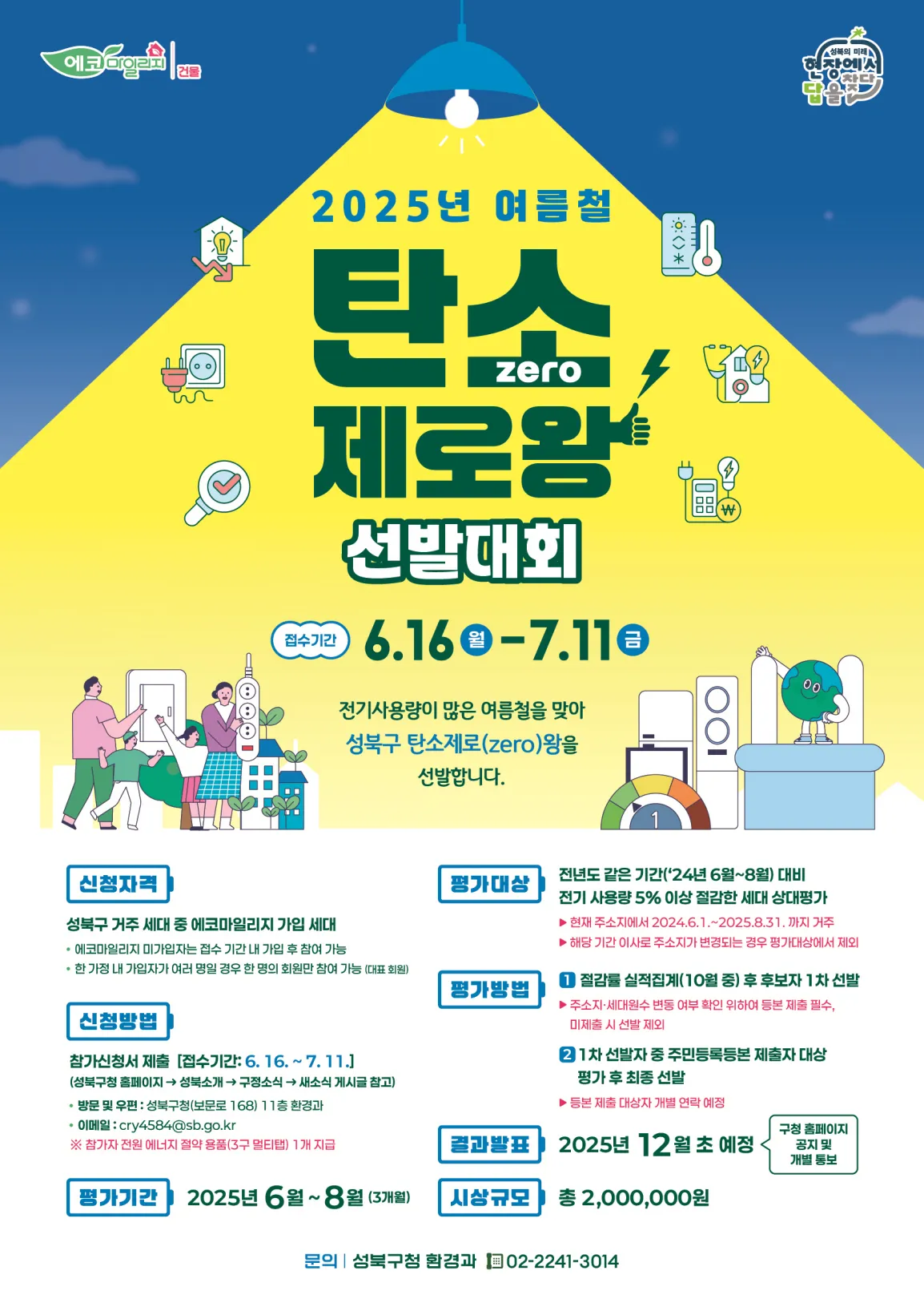 서울 성북구가 여름철 에너지 절약을 실천한 주민을 대상으로 ‘탄소제로왕’을 뽑는다.