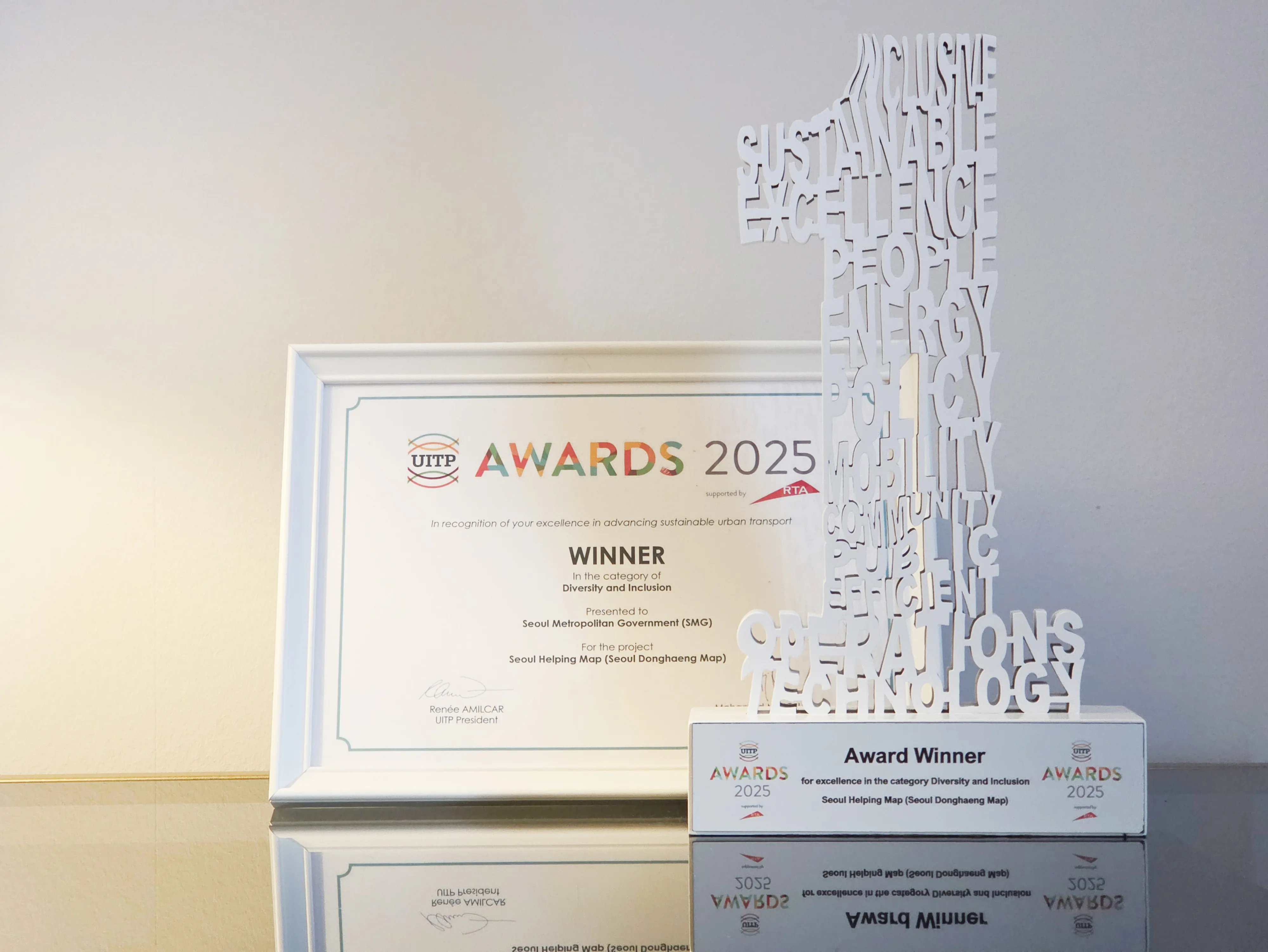 서울시가 개발한 교통 정보 제공 통합 플랫폼 ‘서울동행맵’이 ‘2025 세계대중교통협회(UITP) 어워즈’에서 다양·포용성 부문을 수상했다.