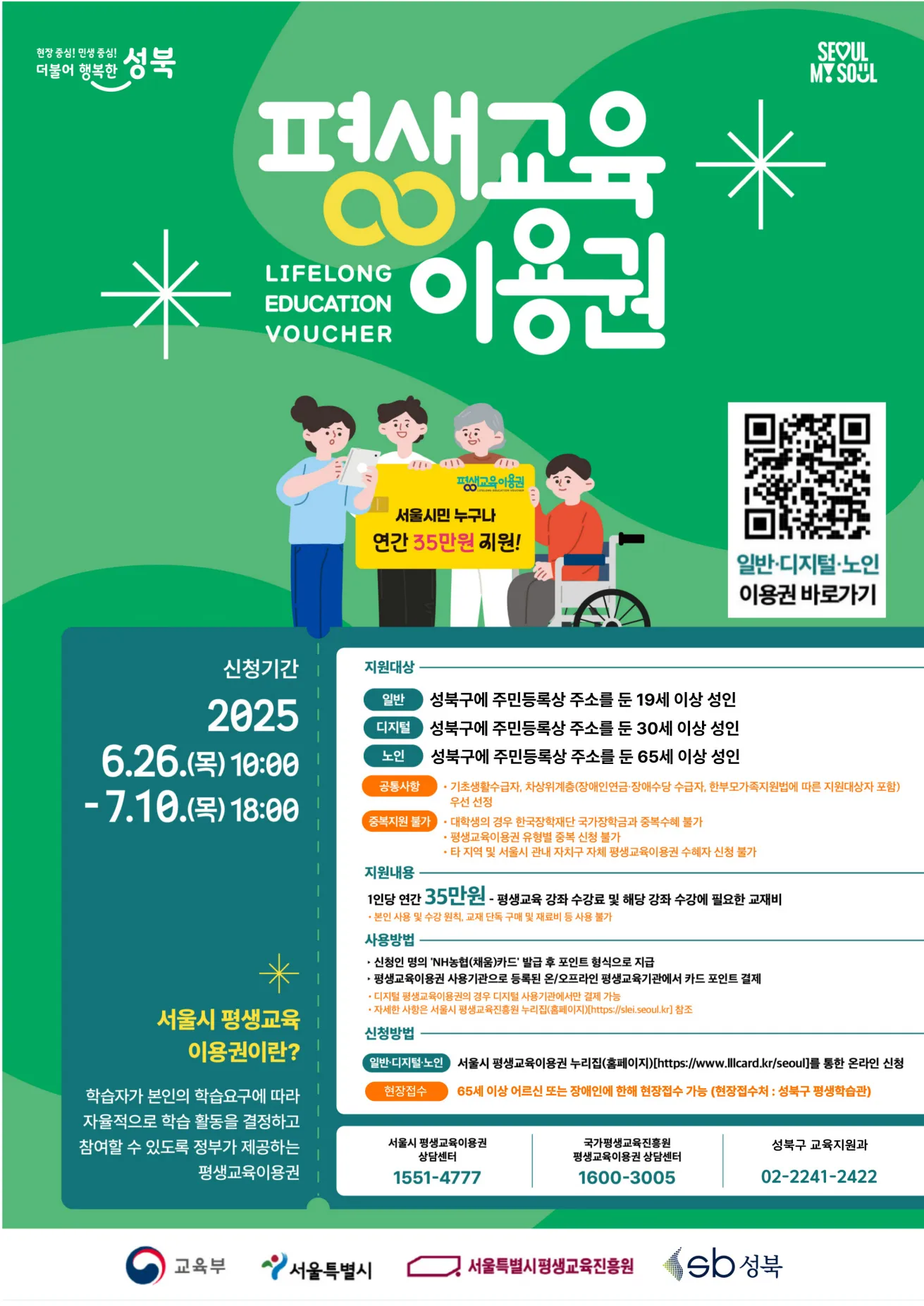 “배움에는 나이 없다”…성북구, 평생교육이용권 참여자 295명 모집