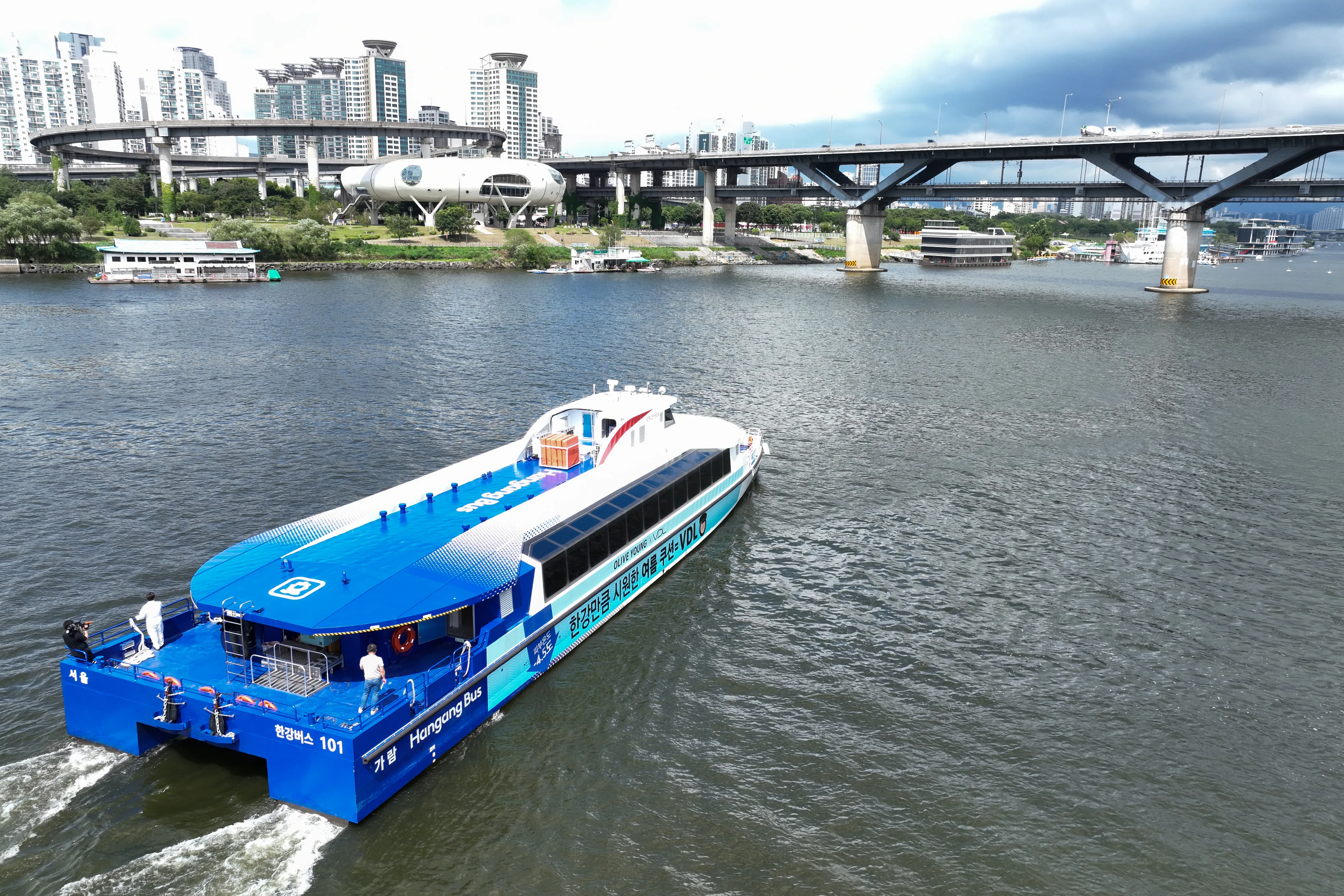 이날 시범 운항을 한 한강버스 101호는 여의도에서 뚝섬 선착장을 경유해 잠실 선착장까지 한강 상류로 거슬러 올라갔다. 9월부터는 마곡~망원~여의도~옥수~압구정~뚝섬~잠실 등 7개 선착장, 약 31.5㎞를 운항하게 된다. 마곡과 여의도, 잠실을 오가는 급행 노선도 병행 운영된다.