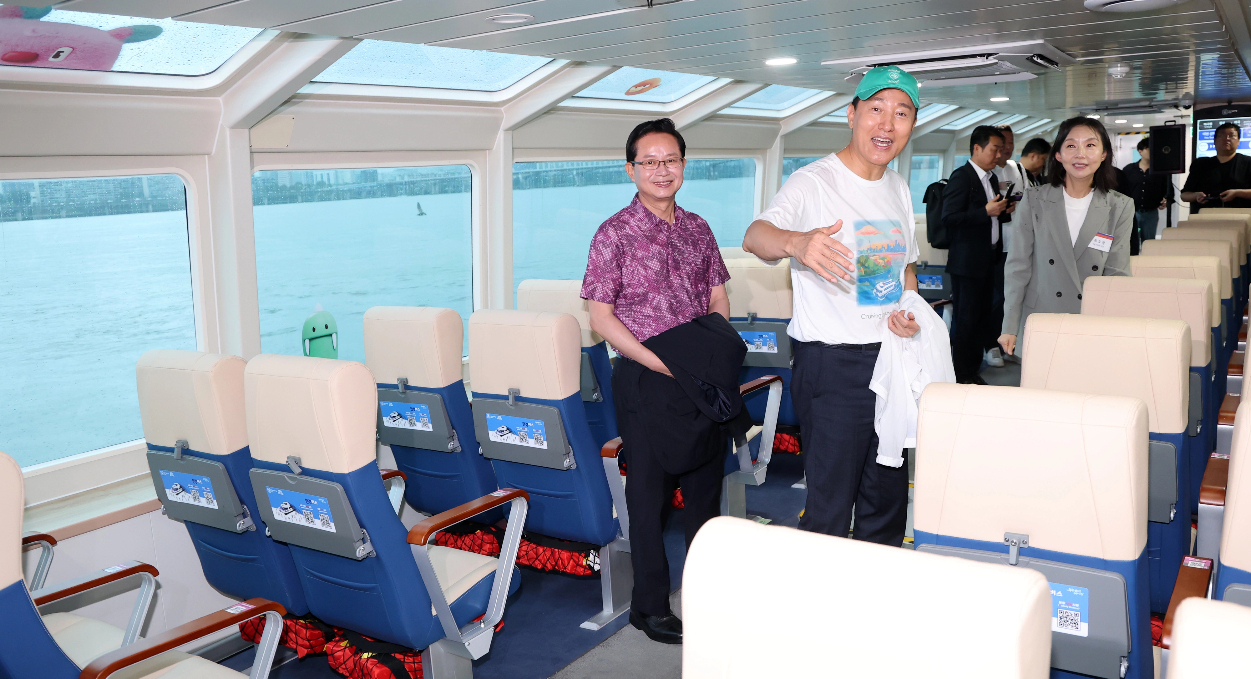 파노라마 통창, 개인별 접이식 테이블 등 쾌적한 시설을 갖췄다. 선내에는 카페테리아를 운영해 커피와 베이글 등 간단한 간식을 즐기며 한층 여유롭게 이동할 수 있다. 자전거 거치대(20대)와 휠체어석(4석) 등도 갖췄다. 서울시 관계자는 “한강버스 이동 중 ‘케데헌’의 대표 배경이었던 남산서울타워와 청담대교 전경 등 다양한 뷰포인트를 만날 수 있다”고 했다.