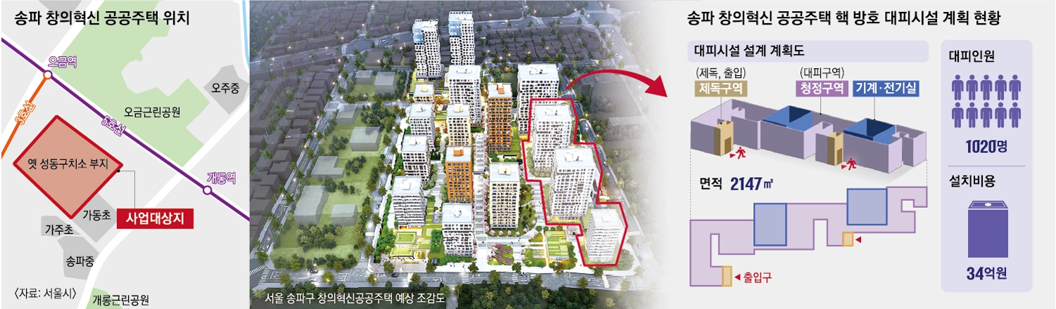 12일 서울신문 취재에 따르면 서울시와 서울주택도시공사(SH)는 송파구 가락동 옛 성동구치소 부지에 조성 중인 송파 창의혁신 공공주택 지하 3층에 핵·화생방 대피시설 설치를 추진 중이다.