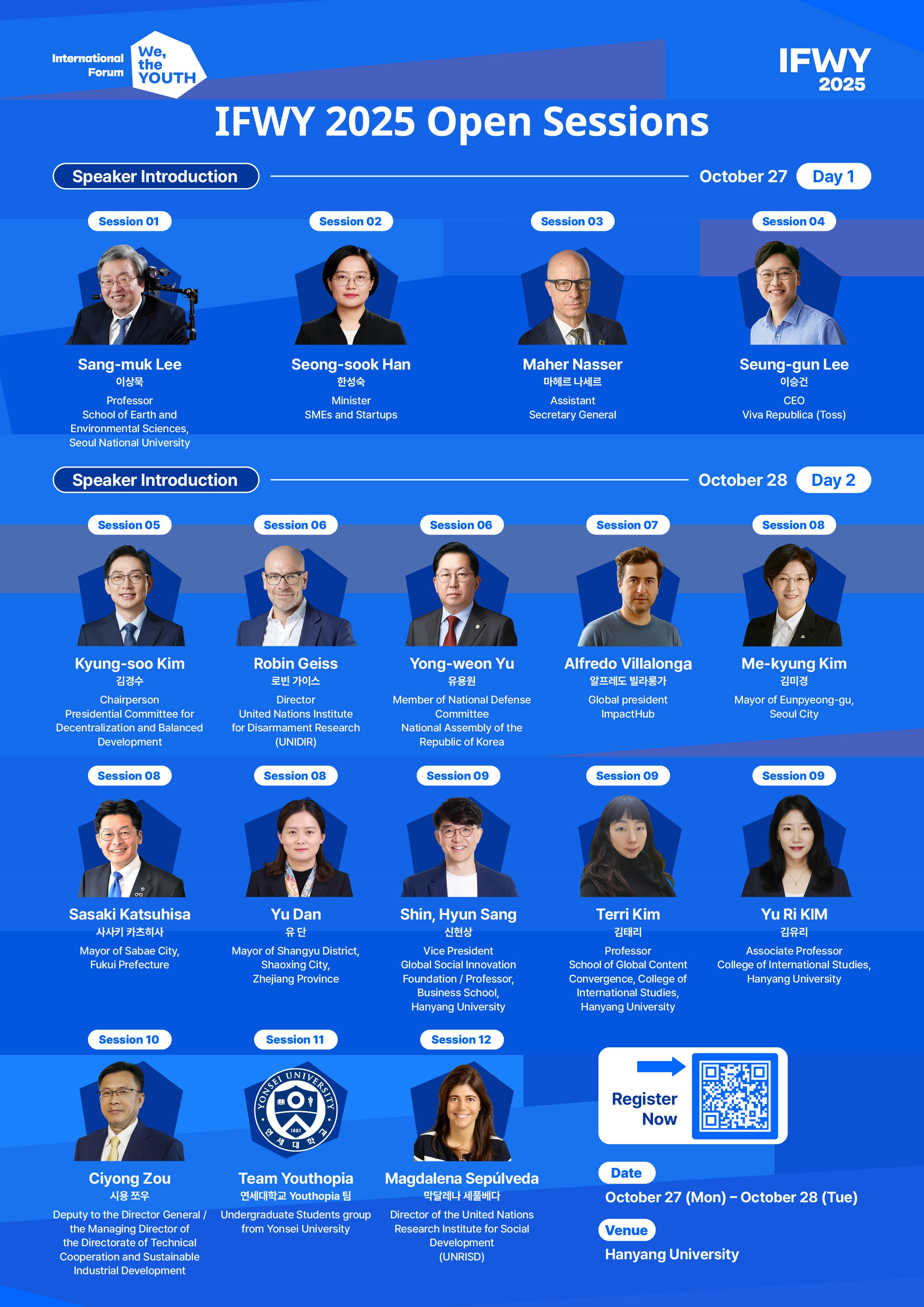 주요 세션은 ▲청년의 기업가 정신 ▲평화와 지속가능성 ▲디지털 녹색산업 ▲균형 성장 등 다양한 주제로 구성됐다. 이 자리에서 청년과 전문가, 정책 리더 등은 머리를 맞대고 실질적인 해법을 모색할 예정이다.