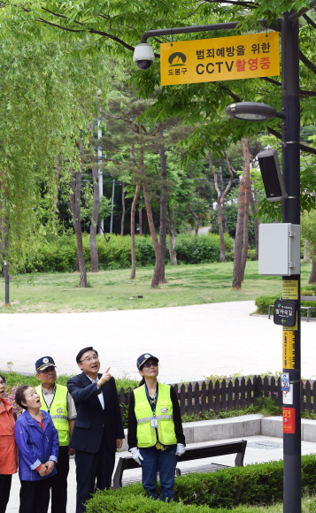 이동진 도봉구청장은 “공원에 클래식 음악을 틀면 휴식객에게는 심리적 안정감을, 범행 의사가 있는 사람에게는 위축감을 줄 수 있다”고 말했다. 따뜻한 마을 분위기를 만들어 범죄욕을 누그러뜨리는 ‘범죄예방 환경설계’(셉테드)를 적용한 것이다. 또 CCTV 화면에 음주하는 사람이 잡히면 이를 지켜보는 통합관제센터에서 ‘음주는 건강을 해치고 탈선과 폭력 행위를 유발한다’는 맞춤형 경고 메시지를 내보낸다. 이 구청장은 “지역 공원 12곳에 노래하는 CCTV 90대를 설치했는데 반응이 좋다”고 말했다.