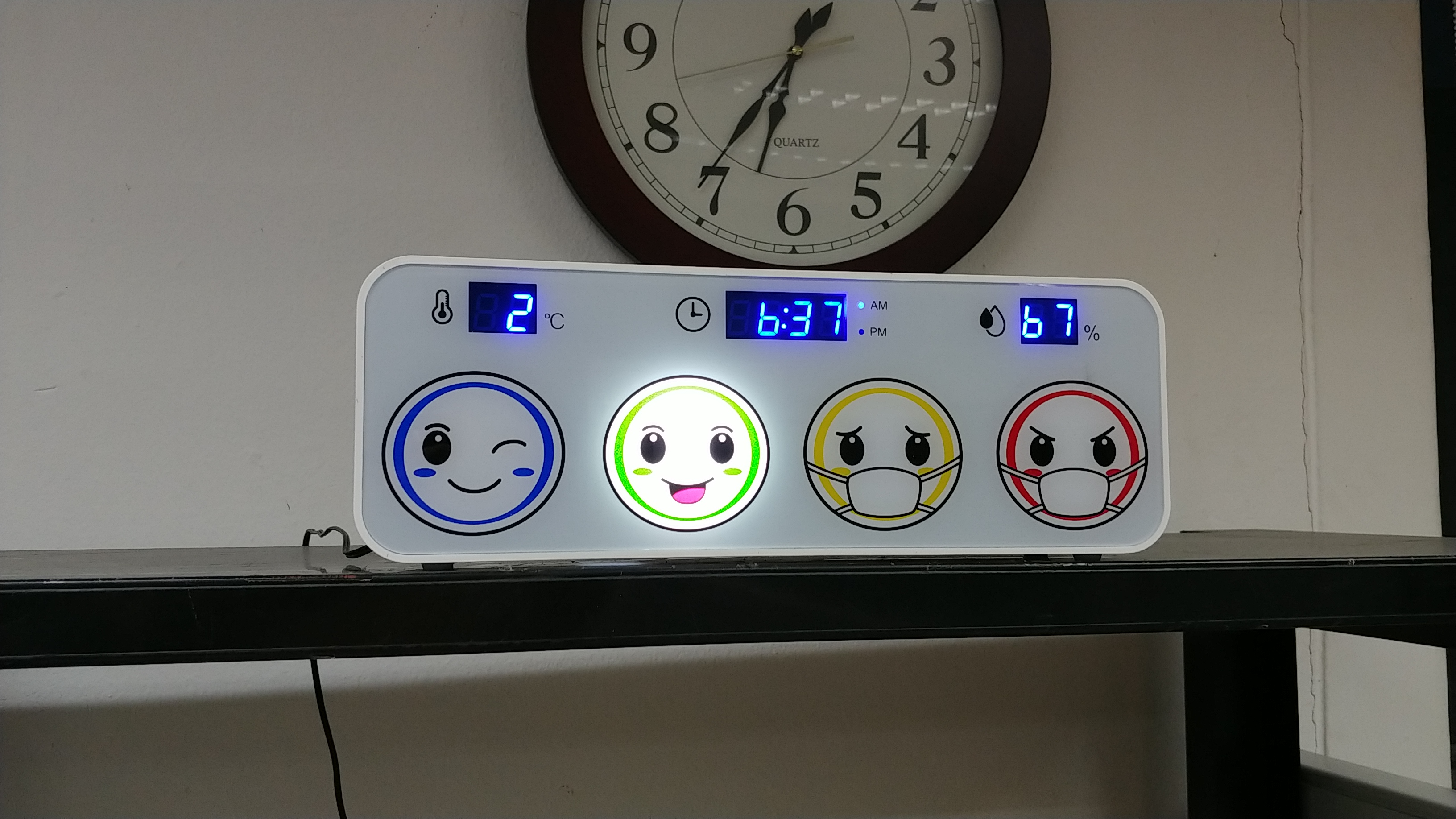 미세먼지 상태에 따라 애니메이션 캐릭터 표정과 색깔이 변하기 때문에 글을 모르는 영유아들도 이 신호등을 통해 대기질 정보를 쉽게 알 수 있다.