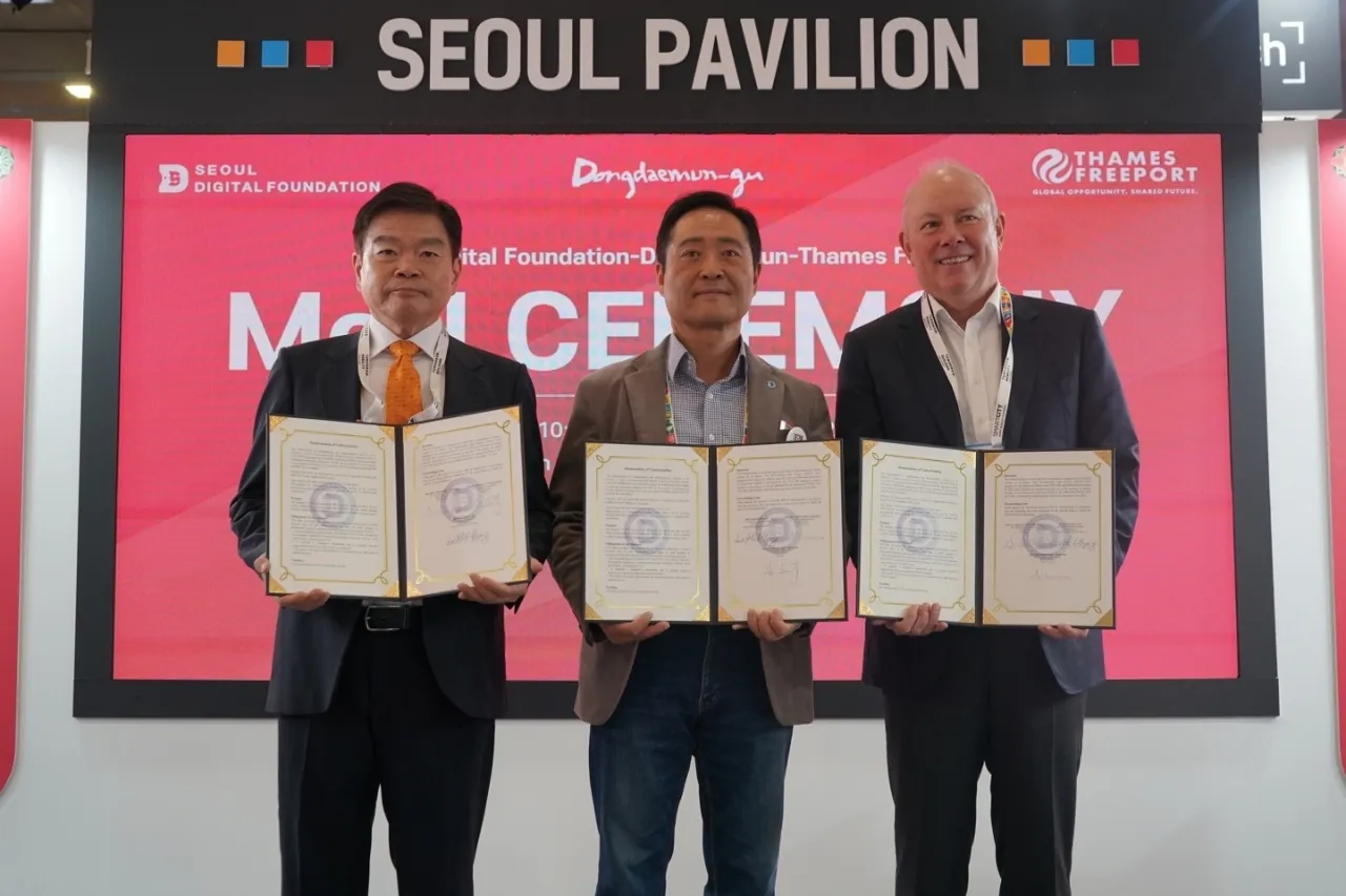 서울 동대문구는 지난 6일(현지시간) 스페인 바르셀로나에서 열린 ‘2024 스마트시티 엑스포 월드 콩그레스’(SCEWC) 서울관에서 서울디지털재단 및 템즈 프리포트(런던 경제특구)와 스마트 솔루션 교차 실증 사업을 위한 업무협약(MOU)을 체결했다.