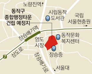 장승배기 지역도 구청 이전으로 활기를 띨 것으로 보인다. 구는 상도2동 영도시장 일대에 지하 3층, 지상 9층(연면적 4만 8350㎡)의 종합행정타운을 만들어 현재 노량진과 대방동 등에 흩어진 구청사와 구의회, 시설관리공단 등을 모두 입주시킬 계획이다. 경찰서와 소방서도 같은 장소로 이전을 추진 중이다. 구 관계자는 “새로 지을 행정타운 1층에는 영도시장 상인들이 입주할 상점가가 들어설 계획”이라면서 “현재 영도시장 공실률이 70%를 넘을 정도로 슬림화돼서 지역 상인들도 복합행정타운 건립을 매우 반긴다”고 말했다.