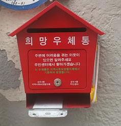 희망우체통은 주민센터와 은행 등 금융기관, 의료기관, 종교시설, 복지시설 등에 설치됐다. 주민이 자신의 사연이나 이웃의 사연을 그 자리에서 간단히 적어 함에 넣을 수 있도록 메모지와 볼펜도 함께 놓아뒀다.
