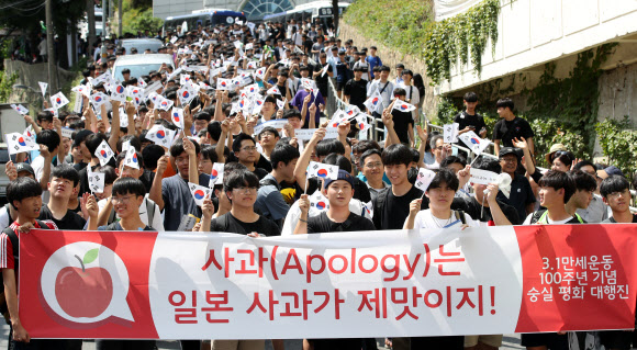 숭실중고생 1000여명 “일본 규탄” 평화대행진