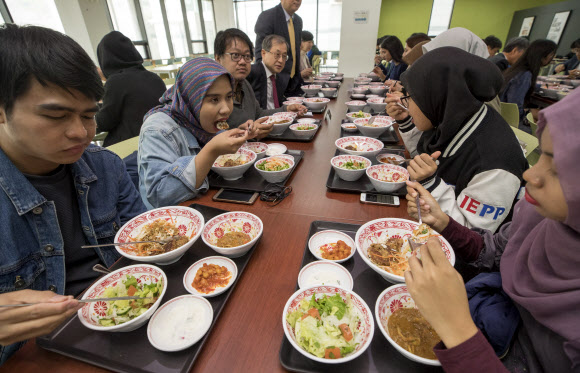 서울 >관악구 서울대 구내식당에 ‘할랄 음식’ 등장 입력 2018 04 02 21:12 수정 2018 04 03 00:07 기사 소리로 듣기 다시듣기 서울대 구내식당에 ‘할랄 음식’ 등장인도네시아 유학생들이 2일 오후 서울대 감골식당에서 할랄 음식을 먹고 있다. 서울대는 이날부터 무슬림(이슬람 신자) 학생들을 위해 점심 시간에 한 끼 5000원의 할랄 음식을 제공한다. 연합뉴스 인도네시아 유학생들이 2일 오후 서울대 감골식당에서 할랄 음식을 먹고 있다. 서울대는 이날부터 무슬림(이슬람 신자) 학생들을 위해 점심 시간에 한 끼 5000원의 할랄 음식을 제공한다.연합뉴스 ⓒ 트윅, 무단 전재 및 재배포 금지