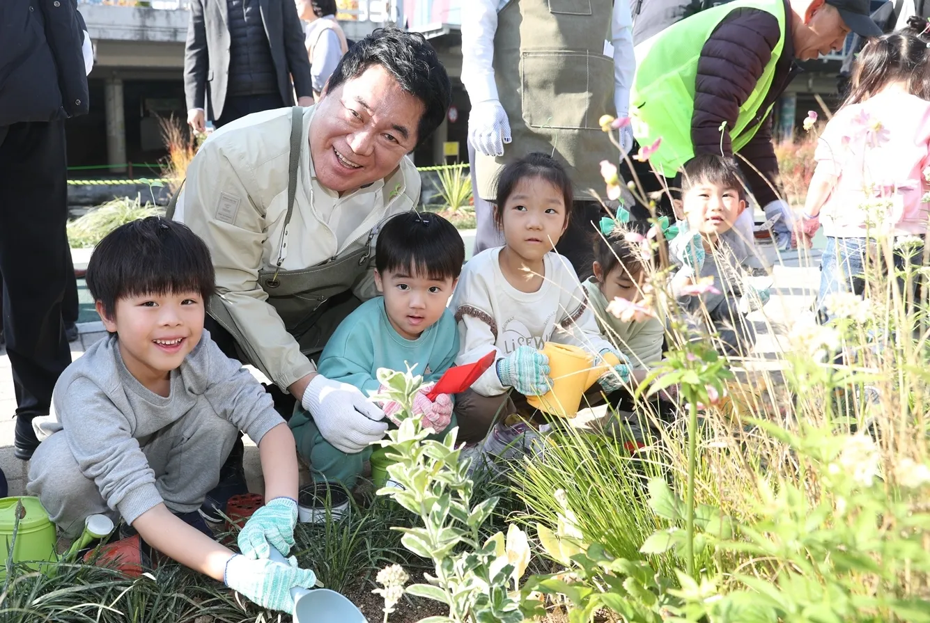 박준희 관악구청장은 지난 13일 인근 어린이집 유아, 주민들과 함께 봉림교 아래 별빛정원 3호에 나무를 심고 정원을 꾸몄다. 별빛정원 3호는 가을을 대표하는 식물인 문그로우, 은사철, 수크령, 억새 등 35종 수변 식물을 혼합한 다채로운 식물로 꾸며졌다.