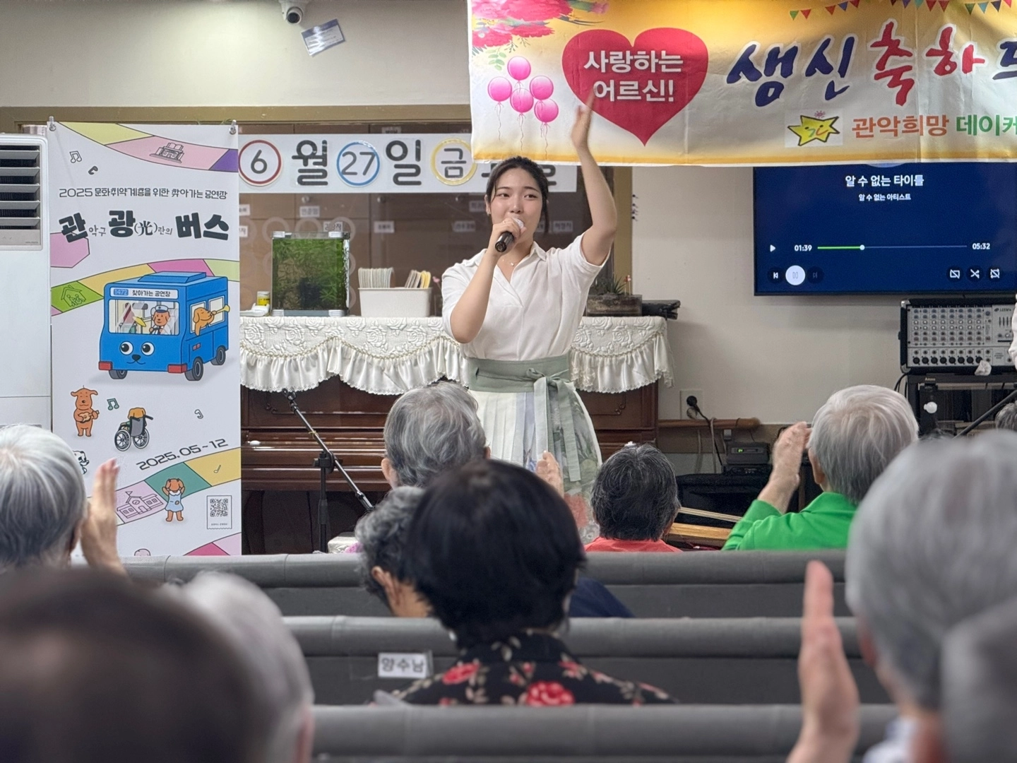 혼성 팝페라 그룹 ‘아띠클래식’은 “조용히 눈물을 훔치던 한 어르신 부부가 공연 후 ‘내 인생에 이런 무대를 볼 줄 몰랐다’고 감사 인사를 전한 순간이 가슴 깊이 남았다”며 2년째 관광버스에 참여했다. 관악문화재단은 2023년 35회, 지난해 47회에 이어 올해는 관광버스 공연 88회를 여는 게 목표다.